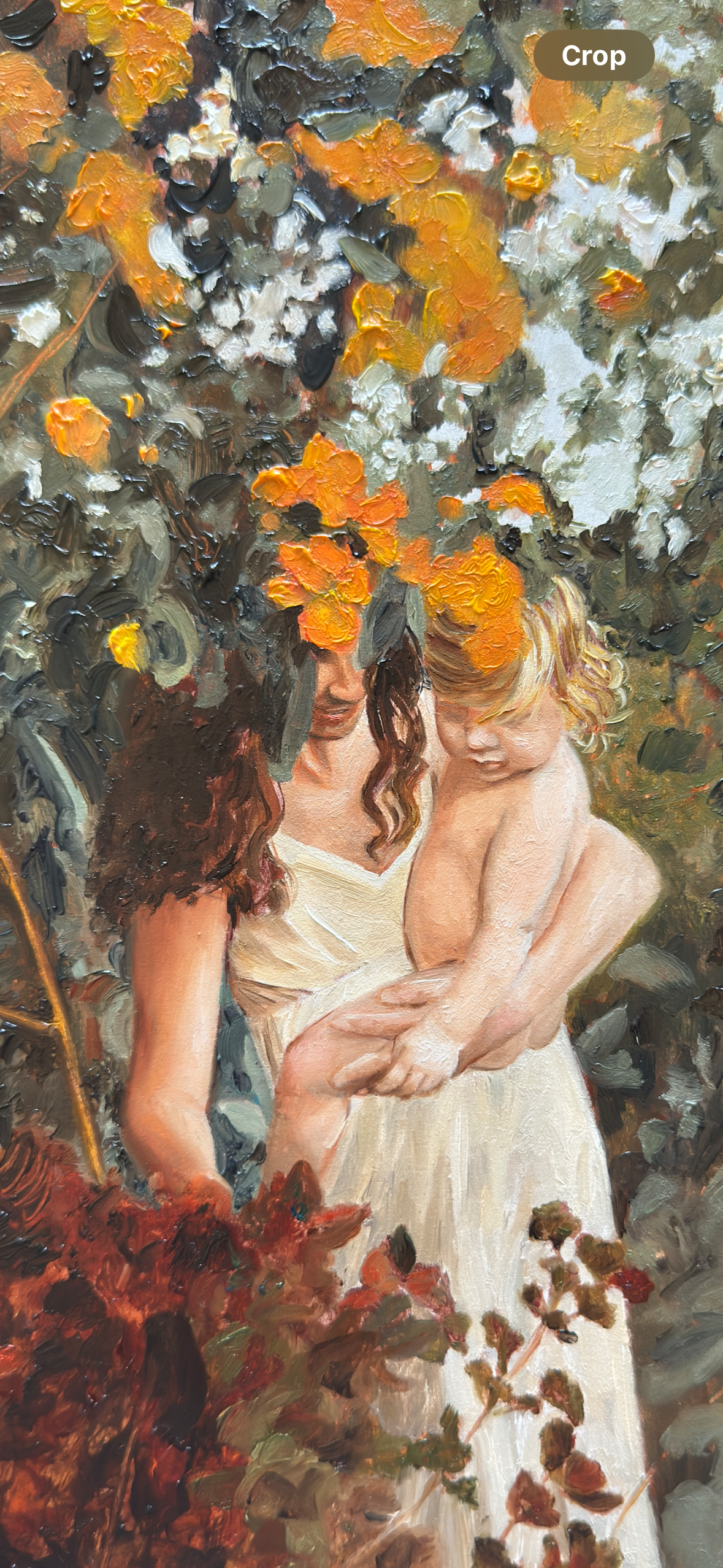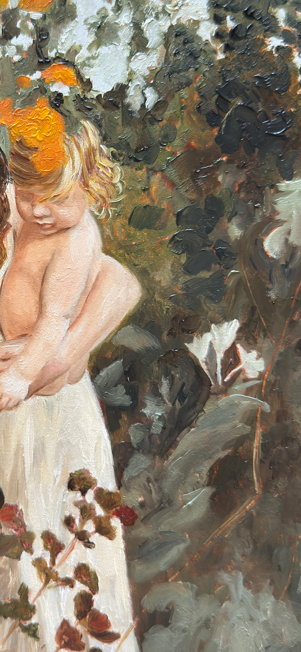 holding her child, hands reaching,