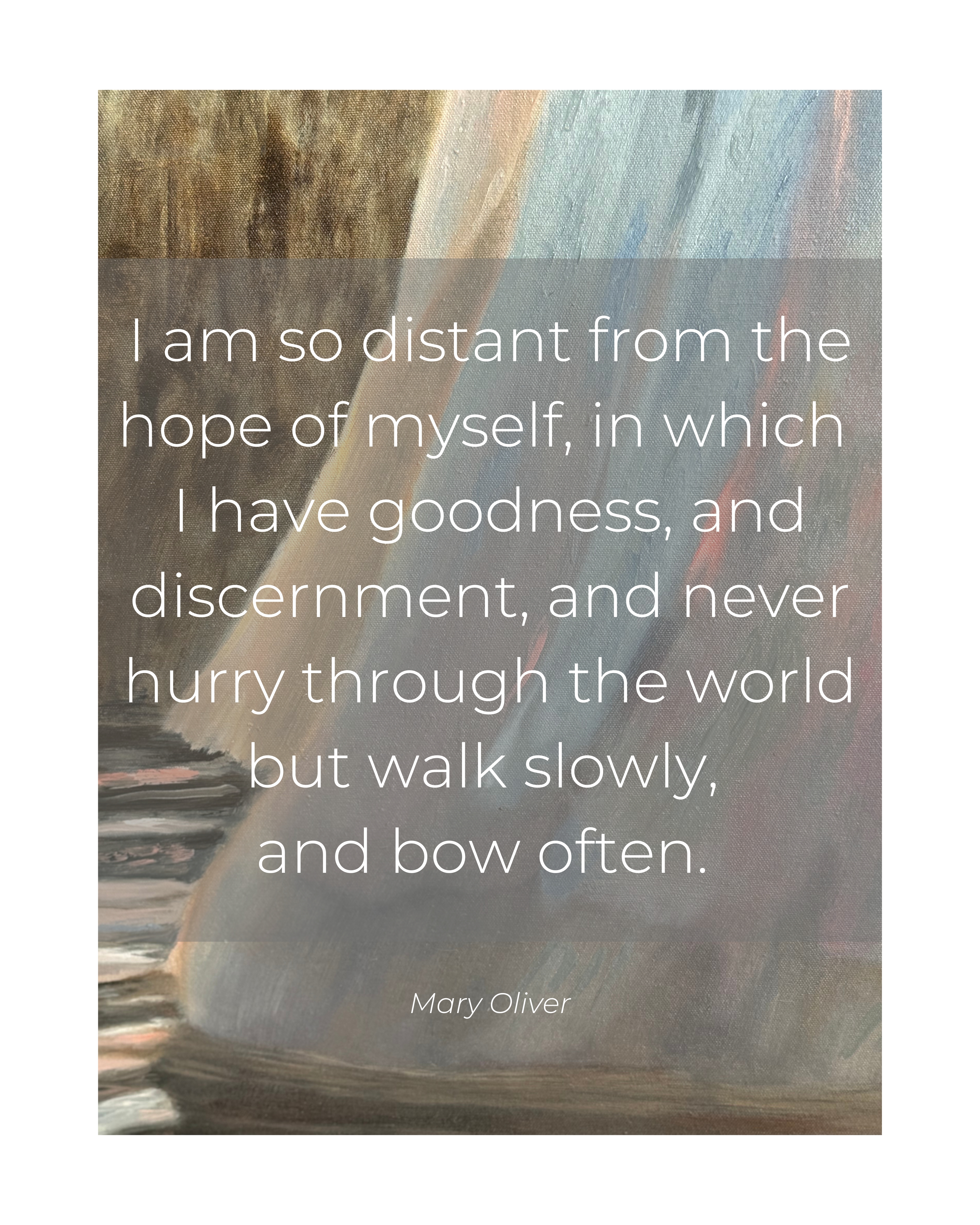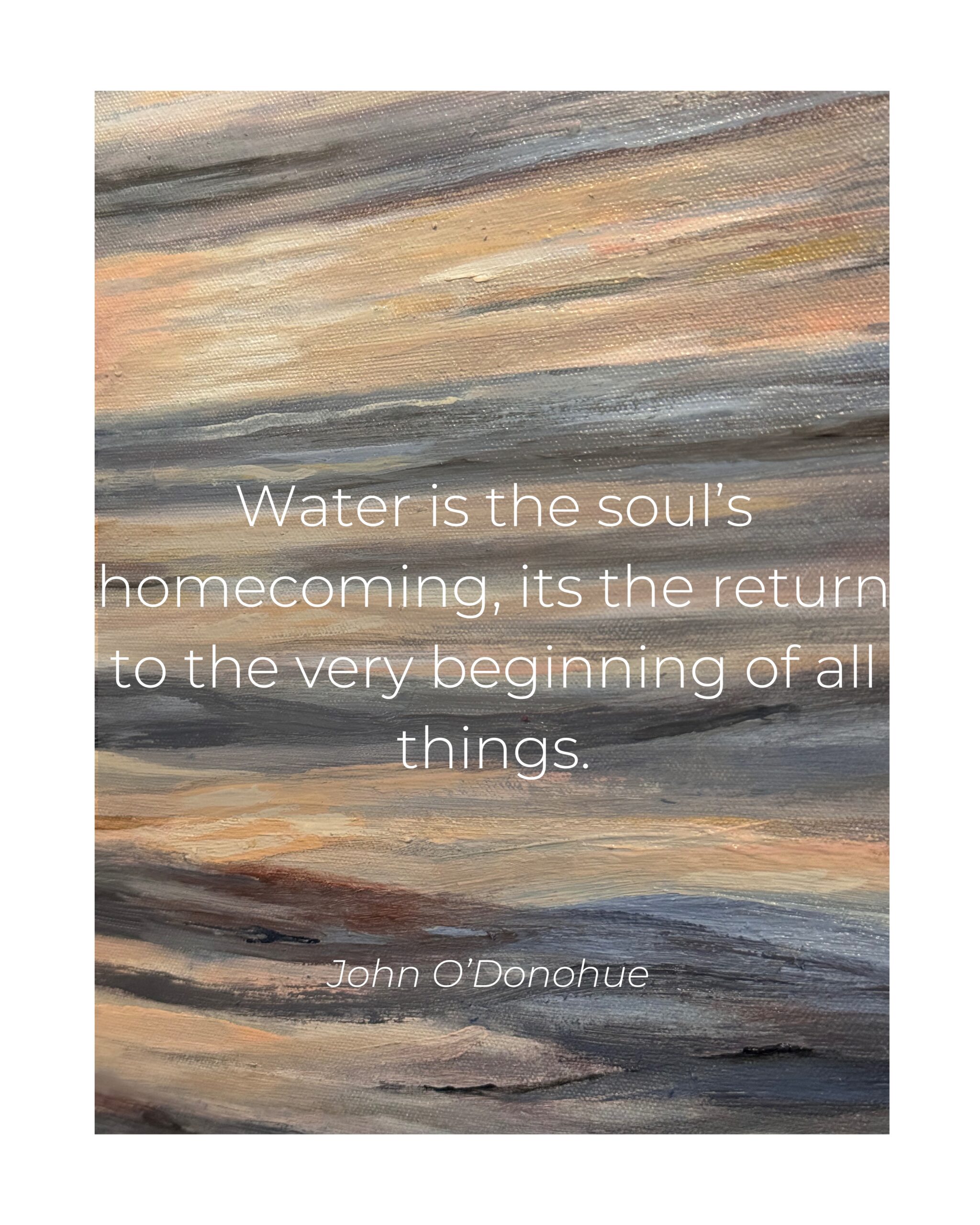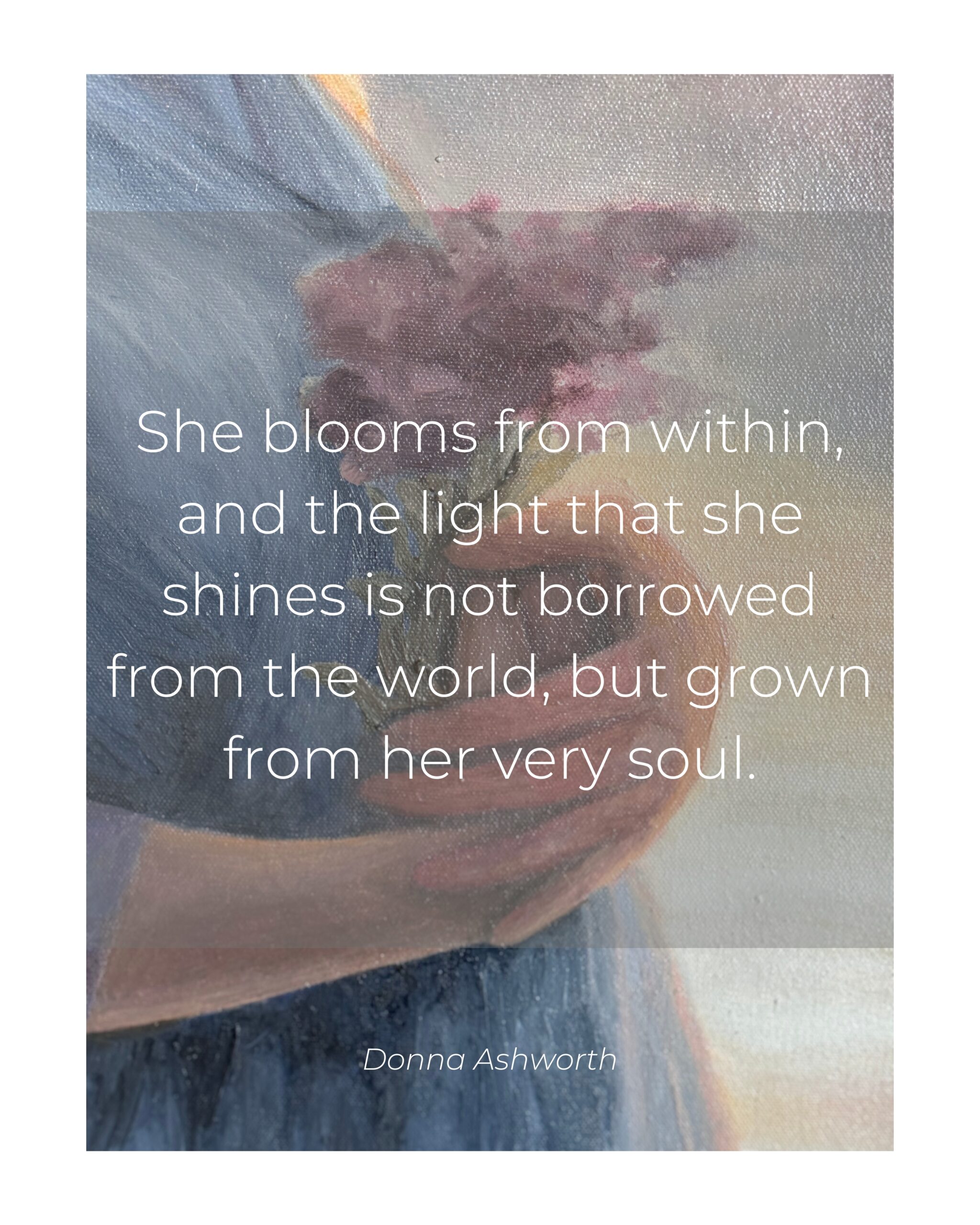 “This painting captures the tender strength and boundless hope embodied by the divine feminine—our Heavenly Mother. She offers us more than guidance; she offers us a deep, nurturing love that sustains us through life’s greatest challenges. The flowing water around her symbolizes the eternal, life-giving force of the divine, urging us to honor our sacred connection to her and to the world she helps create. May this artwork remind you to embrace the hope she offers, trust in the unfolding of your journey, and find profound strength in the beauty of your vulnerability.”