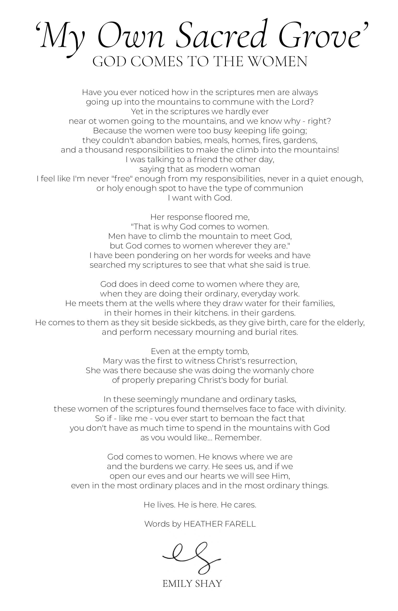 “My Own Sacred Grove” poem insert is also available to buy here for $2.50