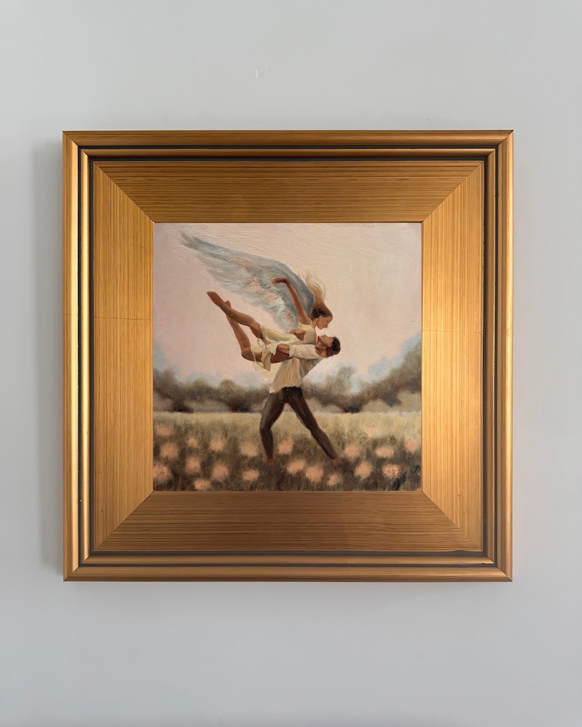 “In Wings and Roots, I wanted to explore the harmony between soaring and grounding—the beautiful interplay of freedom and trust. So often, we think of hope as something that lifts us high, a pursuit of the skies. But sometimes, hope is also the strength found in solid ground, in arms that lift and hold us without restraining us. In this painting, the figure’s wings are both a part of her freedom and her connection to the one who holds her, reminding her that hope is found in both soaring and resting.