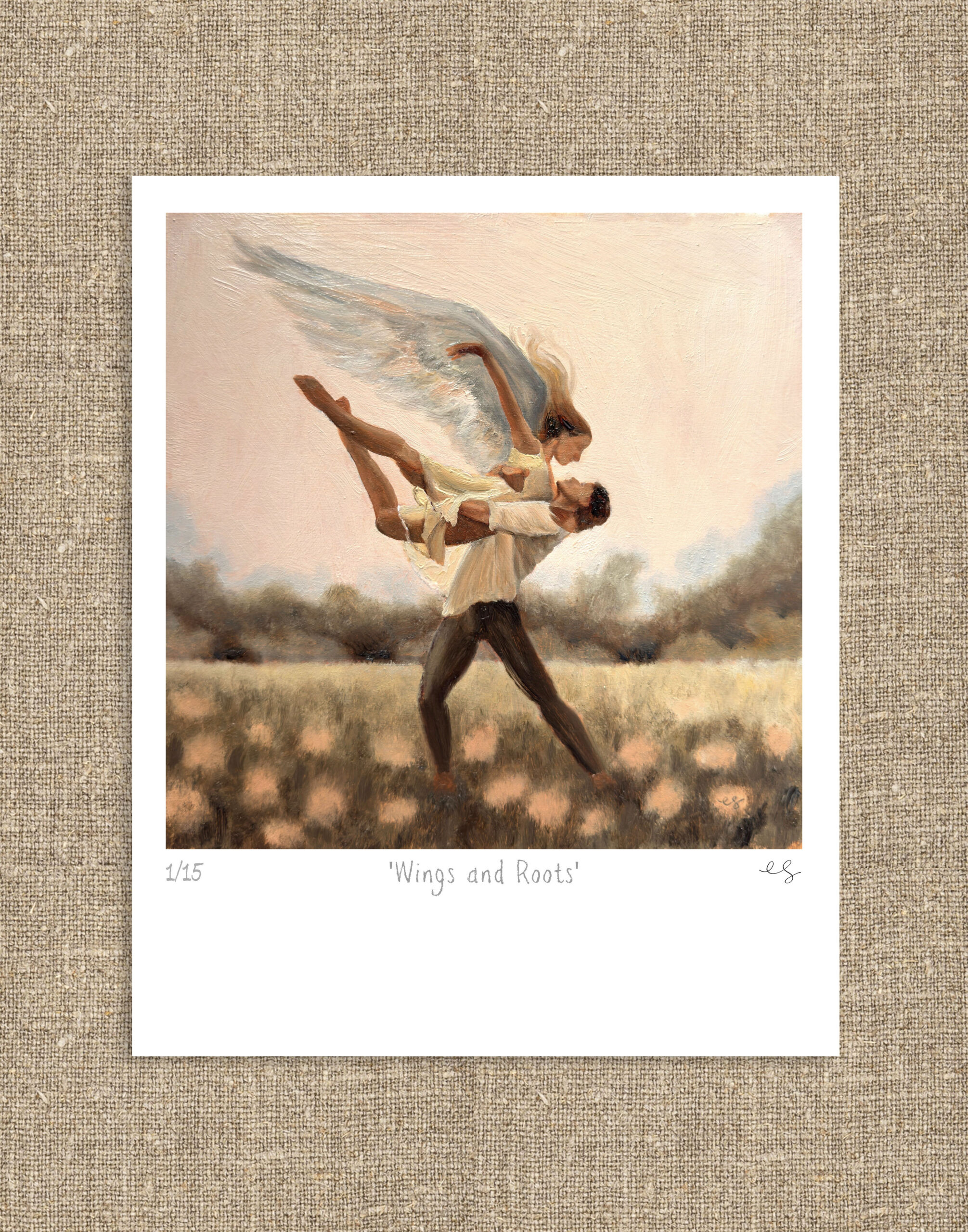 In this limited edition fine art print is a tender balance between flight and grounding, a dance of strength and trust.